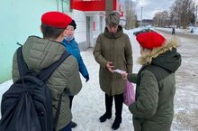 Юнармейцы прошли по главной улице с Кощаково и поздравили женщин с наступающим 8 марта, вручили открытки. -
