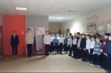 Учащиеся исполняют Гимн Российской Федерации и Республики Татарстан -