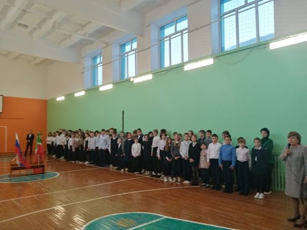 Вынос государственного флага Российской Федерации и флага Республики Татарстан осуществляется в первый учебный день каждой учебной недели перед первым учебным занятием, а так же прослушивание гимнов Российской Федерации и Республики Татарстан 16.01.2023
