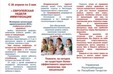 Управление Роспотребнадзора по Республике Татарстан информирует Вас о том, что по инициативе Всемирной организации здравоохранения в Европе, в том числе в Российской Федерации и в Республике Татарстан в период с 26 апреля 2 мая 2021 года проводится Европейская неделя иммунизации.