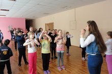 Вожатый ДОО "Лидер" проводит с учащимися начальных классов танец-игру. 29.02.2016