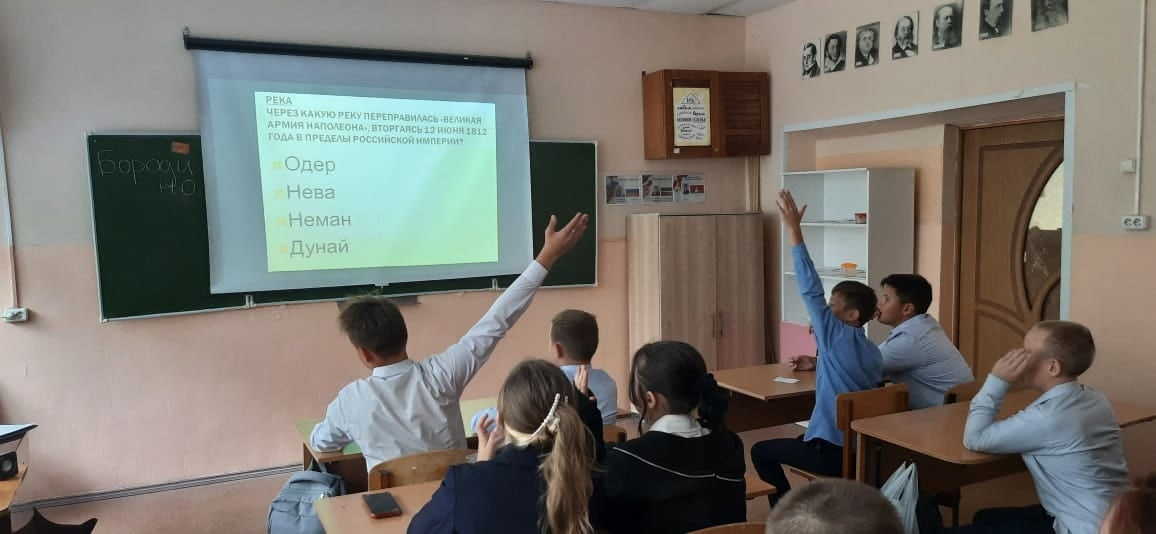 Опубликовано: 08.09.20228 сентября педагогом- библиотекарем МБОУ "Кощаковской СОШ" был проведен ряд мероприятий, посвященных Дню воинской славы. 210 лет Бородинскому сражению (1812) с учащимися 7 класса:
