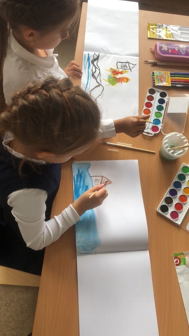 Библиотечный урок на тему : "Сказки народов России". Учащиеся первого класса познакомились с новыми сказками и выполнили творческую работа по мотивам произведений.
