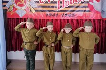 В группе среднего возраста с детьми проводились беседы: «Памятное место нашего села», «Чтобы знали, чтобы помнили», «День Победы», " Что такое героизм", «Георгиевская лента – символ Дня Победы», «Военная техника, рода войск», «Родина-мать зовет!», «Великие битвы», «Дети и война».Интересным мероприятием стало проведение праздничного утренника в подготовительной группе, посвященного Дню Победы: «Пришла весна-весна Победы».Дети пели песни военных лет,читали стихи,инсценировали номер "По страницам военных лет"//Бөек Җиңүнең 76 еллыгын бәйрәм итү алдыннан балалар бакчасында «Җиңү көне»дип исемләнгән тематик атна кысаларында чаралар узды. Максат: мәктәпкәчә яшьтәге балаларда әхлакый – патриотик сыйфатлар һәм үз Ватаның өчен горурлык хисләре тәрбияләү. Урта яшьтәге төркемдә балалар белән «Безнең авылның истәлекле урыны», «онытмасыннар», «Җиңү көне», "Нәрсә ул батырлык", «Георгий тасмасы – Җиңү көне символы», «хәрби техника, гаскәрләр төре», «Ватан-Ана чакыра!» , "Бөек сугышлар«,»балалар һәм сугыш". Җиңү көненә багышланган әзерлек төркемендә "Яз килде-Җиңү язы" дигән бәйрәм иртәсен үткәрү кызыклы чара булды.Балалар сугыш еллары җырлары җырладылар,шигырьләр сөйләделәр, "сугыш еллары битләре буйлап" дигән номер күрсәттеләр"