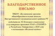 муниципальное бюджетное общеобразовательное учреждение «Кулаевская средняя общеобразовательная школа» Пестречинского муниципального района РТ/Татарстан Республикасы Питрәч муниципаль районы муниципаль бюджет гомуми белем учреждениесе «Колай урта гомуми белем мәктәбе»