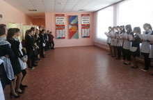 Выступление на школьной линейке "Города - герои". Мәктәп линейкасында 9 нчы сыйныф укучыларының "Герой шәһәрләр" темасына чыгышы 02.03.2015