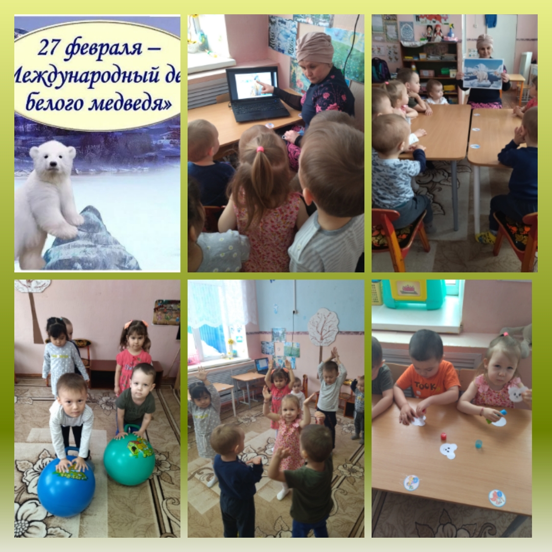 27 февраля отмечается международный День полярного медведя. 28 февраля в дошкольном образовании прошел тематический день "День полярного медведя". В этот день наши дети побывали в мире полярных властелинов и получили массу впечатлений. Дети совершили виртуальное путешествие в Арктику. Они узнали о жизни и повадках полярного медведя. Станецали под песню "Где то на белом свете". А затем ребята перевоплотившись в белых мишек принимали активное участие в соревновательных играх: "Кто больше наловит рыбок?", "Перекати снежный ком", " По следам белого медведя", "Удержись на льдине", сделали апликацию "Белая мишка", а закончилось мероприятие коллективным просмотром мультфильма "Умка". Проведенное познавательное мероприятие познакомило ребят с этим интересным животным, занесенным в Международную Красную книгу и Красную книгу России. Дети получили разностороннее представление о белом медведе и осознали важность защиты и сохранения этого вида животных.