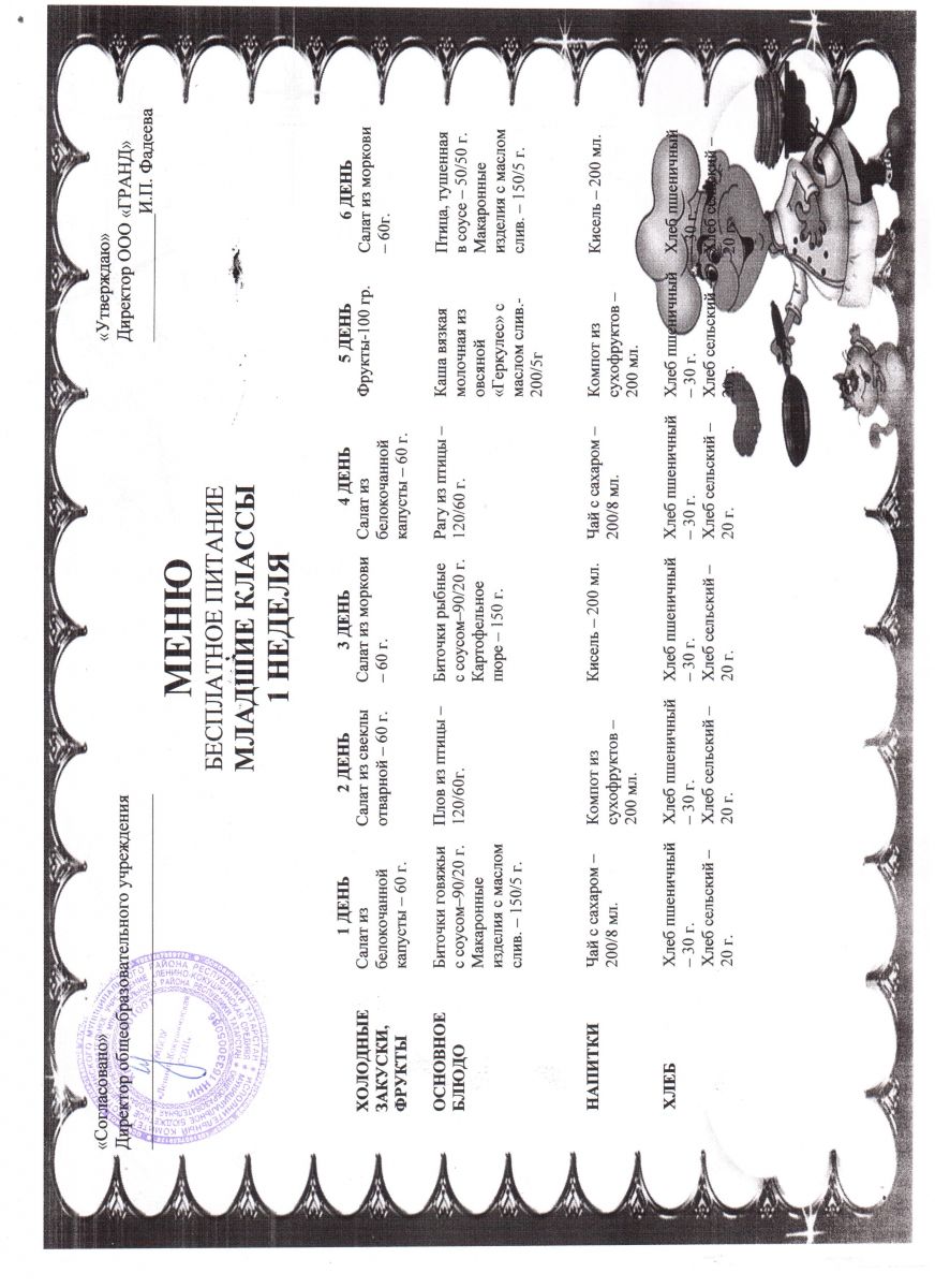 Меню на лагерь 17.06.2024г. - 27.06.2024г.