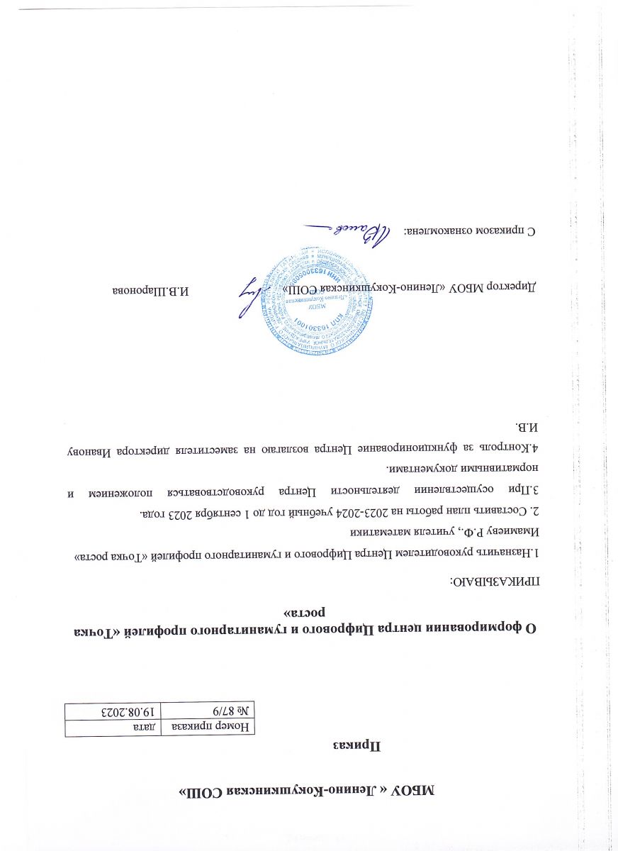 2. Приказ о назначении руководителя Центра "Точка роста" МБОУ "Ленино-Кокушкинская СОШ"