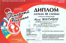 Победа на Х Республиканском конкурсе детского творчества «Арча ягы-данлы Тукай ягы» 03.04.2015