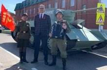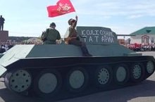 Парад Победы 9 мая 2021г в с.Пестрецы. Макет образца военной техники " Танк Т-34" изготовлен в лицее. 09.05.2021