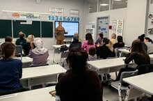 Профориентационная встреча с представителями МЧС России. Начальник отделения надзорной деятельности и профилактической работы по Пестречинскому району Габдрахманов Рамис Айдарович провёл беседу с учениками лицея "Алгоритм".