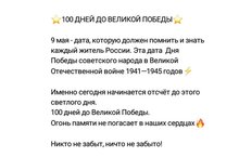 До празднования 75 летия Великой Победы осталось 100 дней 29.01.2020