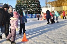 Сотрудники нашего детского сада провели новогоднее мероприятие с конкурсами и подарками около центральной ёлки.