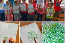 Рисование "Птички-невелички" Дети упражнялись в технике рисования нетрадиционным способом ладошкой, учились передавать образ птицы в рисунке.