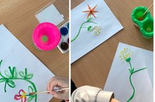 Воспитанники старшей группы учились рисовать тонкой кисточкой - цветы, тонкие линии и очертания.