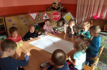 Воспитанники детского сада вспомпнили все изученные ранее правила безопасного движения на проезжей части, основные дорожные знаки, повторили изученный материал, а также рисовали дорожные знаки глазами ребенка