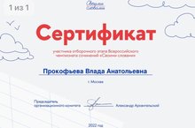 Обучающаяся 9 класса Прокофьева Влада - участник Всероссийского чемпионата сочинений «Своими словами»