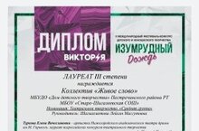 Лауреаты 3 степени в международном фестивале -конкурсе "Изумрудный дождь" 24.11.2021