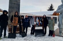 Вооружившись лопатами, дружно принялись за работу, убирая снег, накопившийся за последние дни.