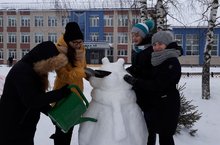 Оформление территории школы снежными фигурами. 20.12.2017