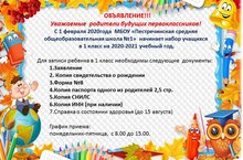 Прием в 1-ий класс 16.01.2020
