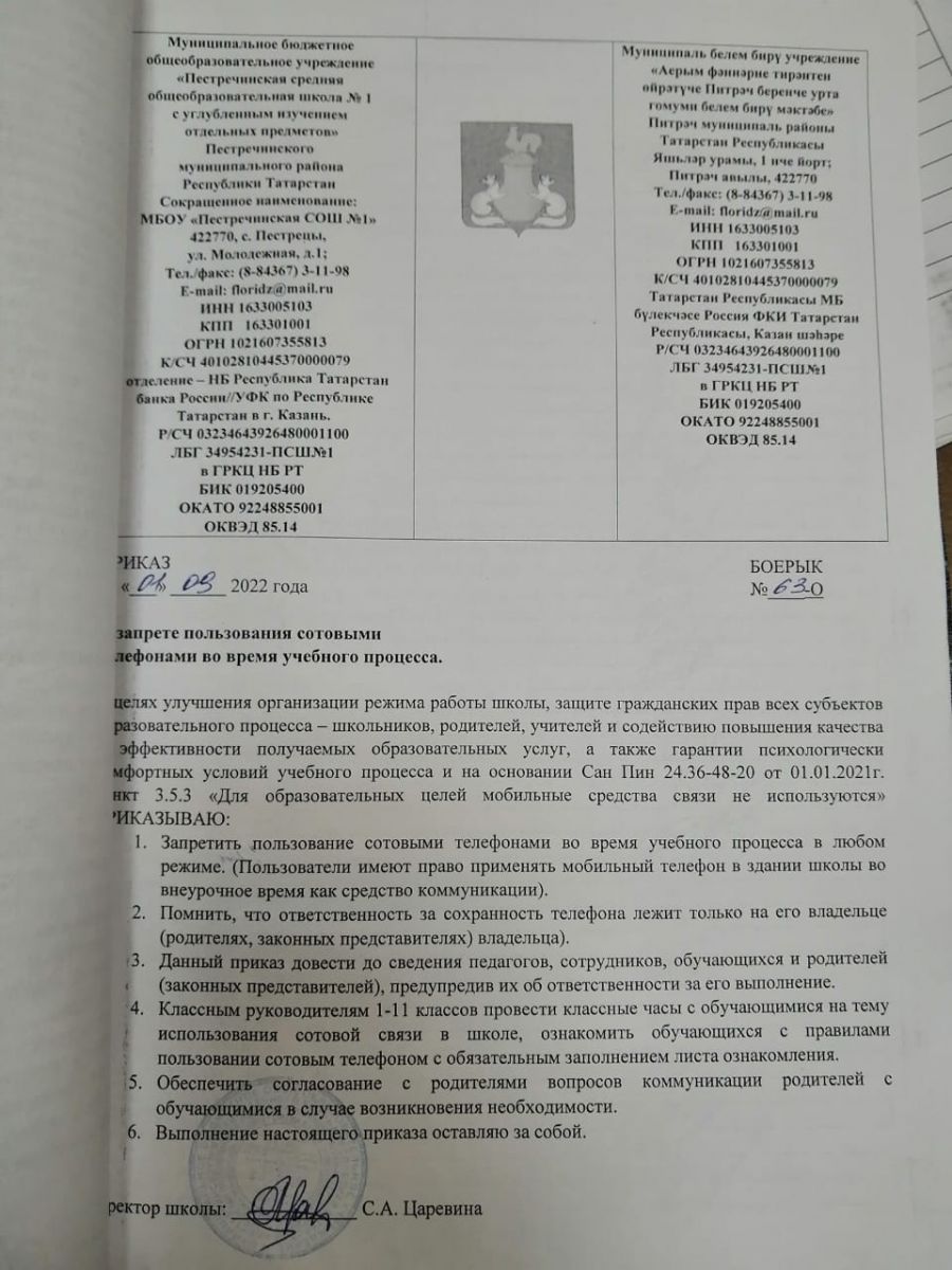 - "О запрете ипользования сотовых телефонов во время учебного процесса"