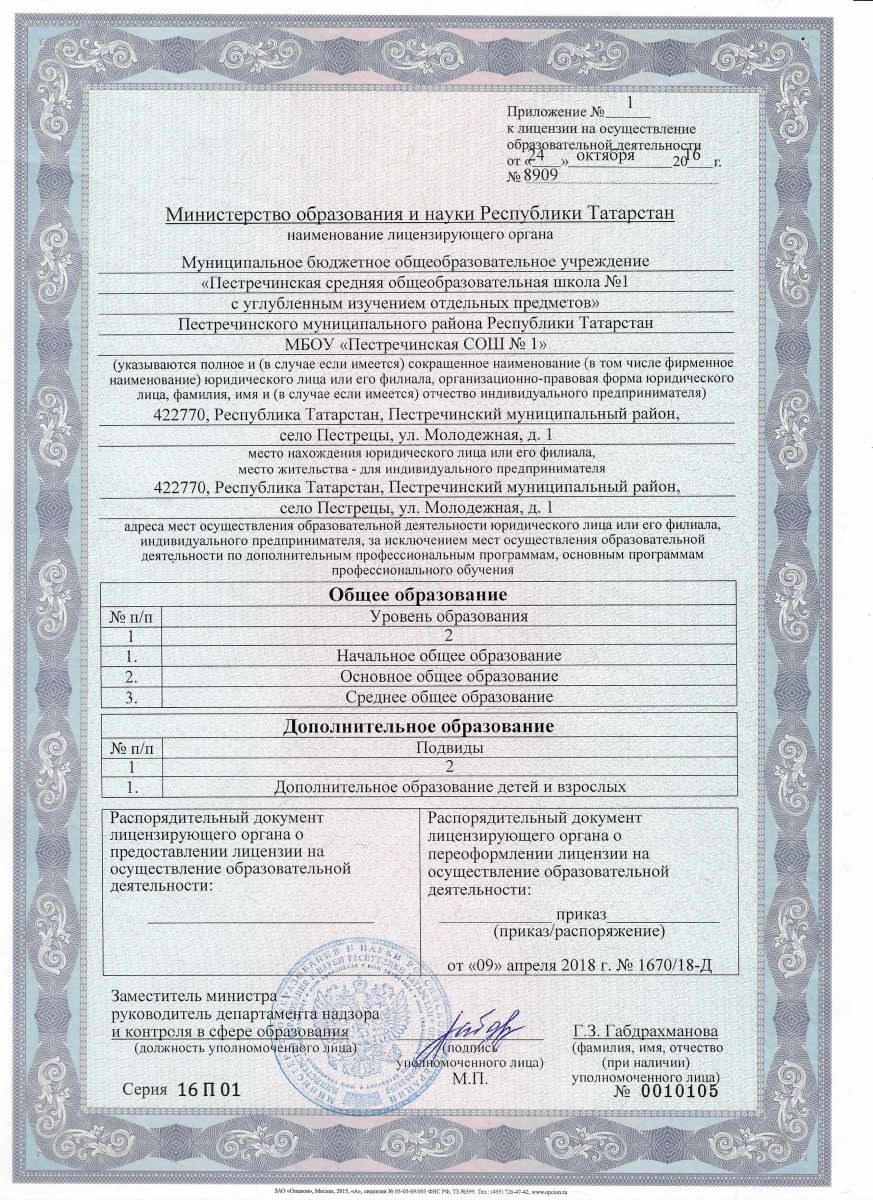 МБОУ "Пестречинская средняя общеобразовательная школа №1 с углублённым изучением отдельных предметов имени Героя России Ивана Алексеевича Додосова" (Школа - центр компетенции в электронном образовании)/Татарстан Республикасы Питрәч муниципаль районы “Россия Каһарманы Иван Алексеевич Додосов исемендәге аерым фәннәрне тирәнтен өйрәтүче 1 нче номерлы Питрәч урта гомуми белем БИРү мәктәбе” муниципаль бюджет гомуми белем бирү учреждениесе