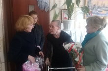 Учащиеся 6 а и 9 а с классными руководителями поздравили ветерана труда Пилюгину Марию Ефимовну с 102-летием 04.04.2017