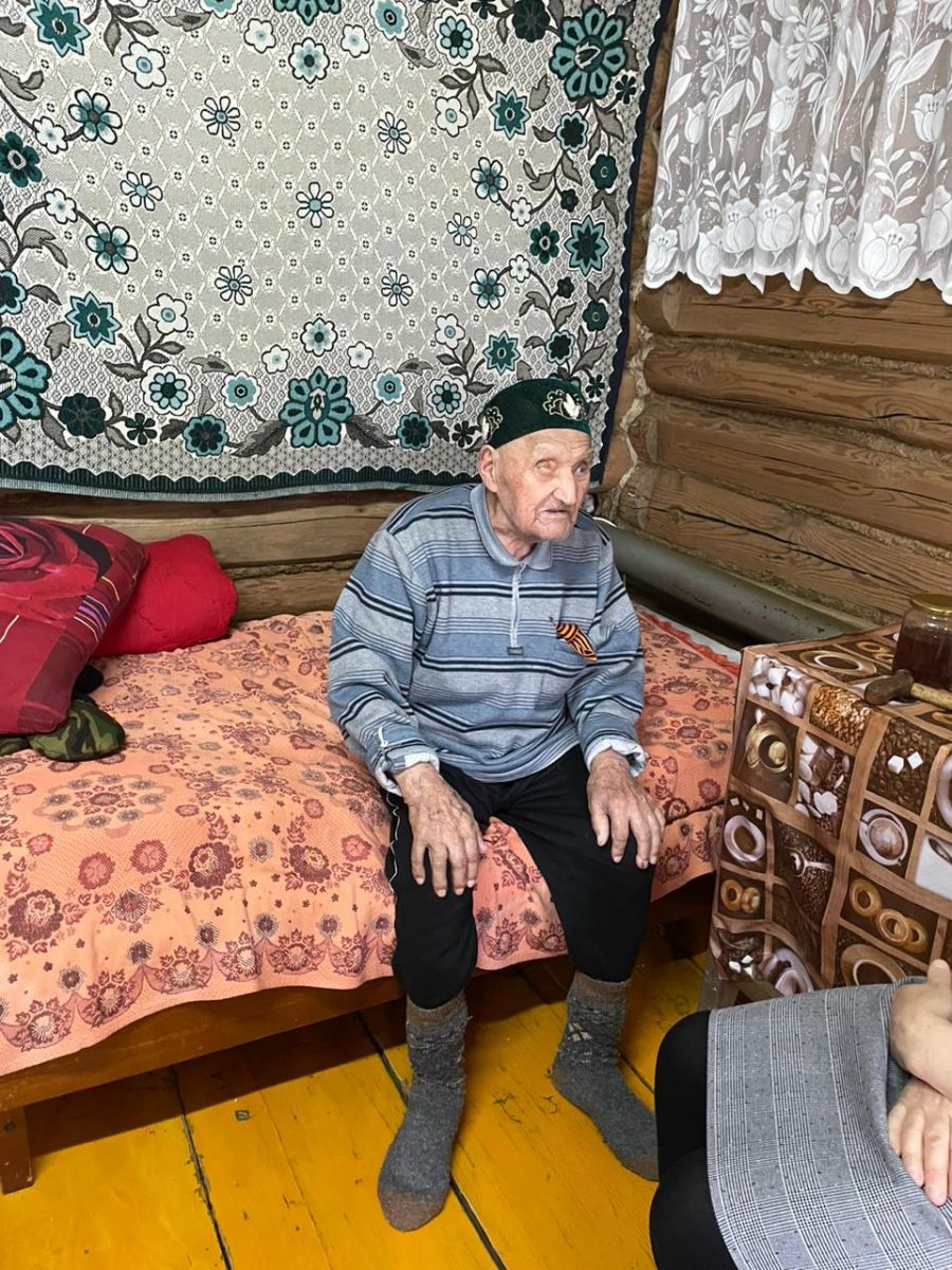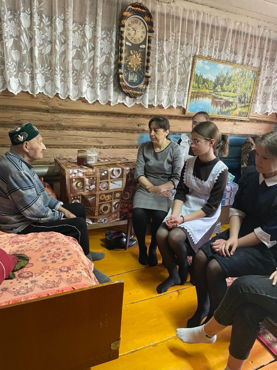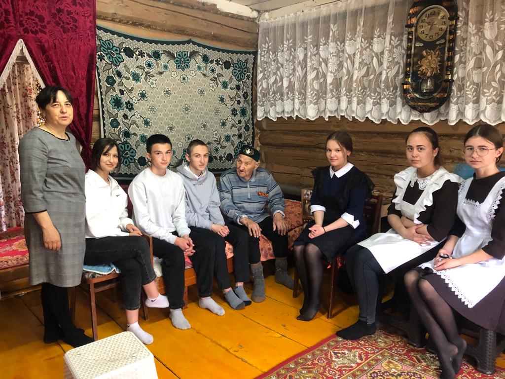 Учащиеся 8 класса поздравили ветерана ВОВ Гимадиева Х.М. с днем Победы