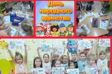 В нашем детском саду прошли мероприятия посвященные Дню Народного единства. Дети вместе с родителями раскрашивали рисунки людей в национальных костюмах народов населяющих Россию. С участием педагогов и родителей наших воспитанников организовали выставку в музее «Давайте дружить народами», куда разместили предметы быта и культуры разных народов, где педагоги провели с детьми тематические беседы. А 3 ноября состоялся фестиваль «Хоровод дружбы», в фестивале принимали участие педагоги и воспитанники нашего детского сада: играли в разные народные игры. Ребята отправились в путешествие по нашей необъятной стране, где встретили русскую матрёшку, народы севера, башкир и белорусов, играли на русских музыкальных инструментах, танцевали с платками и читали стихотворения. Завершился фестиваль хороводом дружбы и вручением подарков, из которых можно узнать о России и народах проживающих в ней.