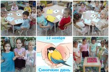 Сегодня в нашем детском саду прошли мероприятия, посвященные Всероссийскому празднику «День синички». Ведь именно 12 ноября, считается днём встречи зимующих птиц, и в народе называется «Зиновий – синичник». Наши детки, познакомились с зимующими птицами, а именно с разными видами синиц. Цель и задачи: расширить представления о всероссийских праздниках, развивать толерантность, чувство сопричастности к всенародным торжествам, учить детей охранять и защищать зимующих птиц, воспитывать в детях заботливое отношение к птицам, желание помогать им в трудных зимних условиях, что нужно вести регулярную подкормку наших меньших братьев. Люди заметили, что глубокой осенью – 12 ноября, птицы собираются стайками. Словно на праздник слетаются пёстрые и нарядные птицы. Считается, что именно в этот день птицы из лесов прилетают в деревни и города на зимовку. Дети узнали новые приметы, которые существуют, вспомнили те, которые знали. Послушали как поет синица (аудиозапись). Отгадывали загадки, лепили из пластилина синичку. Играли в разные игры, где проявили внимание, смекалку, сообразительность, ловкость. Этот день надолго запомнится ребятам, и мы надеемся, что они в своей дальнейшей жизни, никогда не обидят и будут беречь этих удивительных и милых созданий.