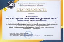 От всей души поздравляем коллектив детского сада с заслуженной наградой: Благодарность коллективу детского сада за активное участие и содействие в проведении мероприятий по профилактике детского дорожно - транпортного травматизма.