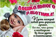 Дорогие коллеги! Позвольте от всей души поздравить вас с вашим профессиональным Днём! Вы - сокровище нации, потому что соприкасаетесь с её юными душами. Им так мало лет, что вам ничего не остаётся, как быть самими немного детьми - иначе как встать на их место, почувствовать то, что чувствуют они?С вами нашим детям расти, развиваться, набираться жизненного опыта, ибо то, что должно их воспитывать и растить (семья) сама постепенно превращается в объект неустанной государственной заботы. Огромное вам спасибо за неустанный труд, за талант быть матерями для чужих детей, за поиск и неравнодушие, за терпение и заботу о каждом малыше, за то, что вы когда-то пришли в свою сферу и остались в ней, не смотря на все трудности и перипетии ваших судеб и судеб Родины.Вашими усилиями институт семьи укрепится, поскольку вы напрямую идёте на формирование личности семьянина.