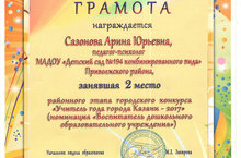 II место в районном этапе городского конкурса "Воспитатель дошкольного образовательного учреждения 2017" 20.02.2017
