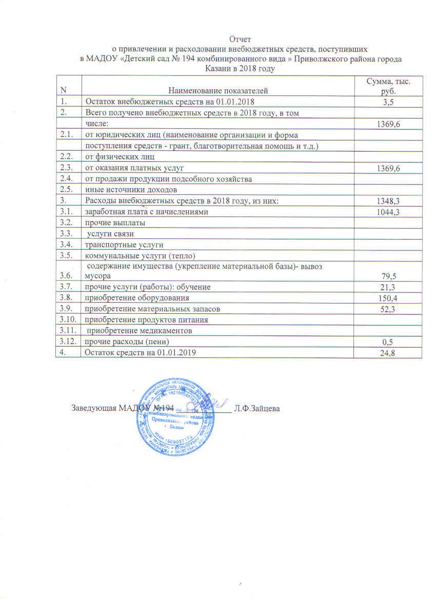 Отчет о привлечении и расходовании внебюджетных средств за 2018