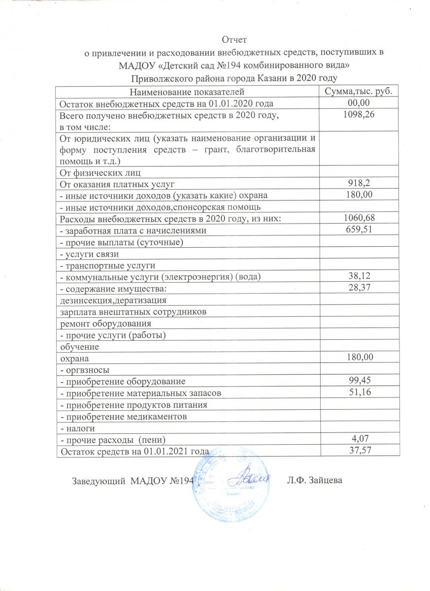 Отчет о привлечении и расходовании внебюджетных средств за 2020