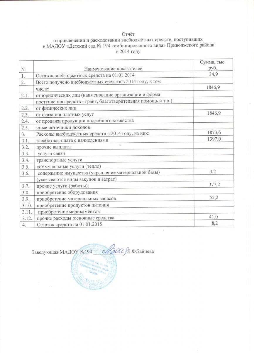 Отчет о привлечении и расходовании внебюджетных средств за 2014