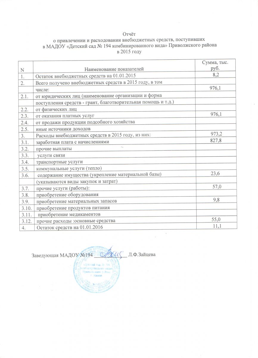 Отчет о привлечении и расходовании внебюджетных средств за 2015