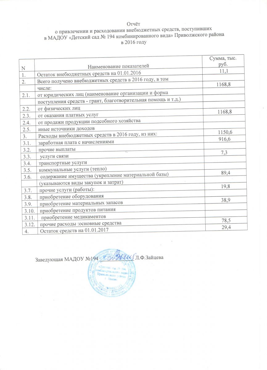 Отчет о привлечении и расходовании внебюджетных средств за 2016