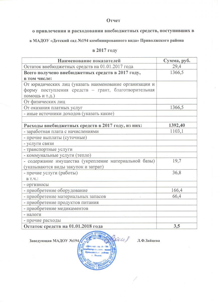 Отчет о привлечении и расходовании внебюджетных средств за 2017