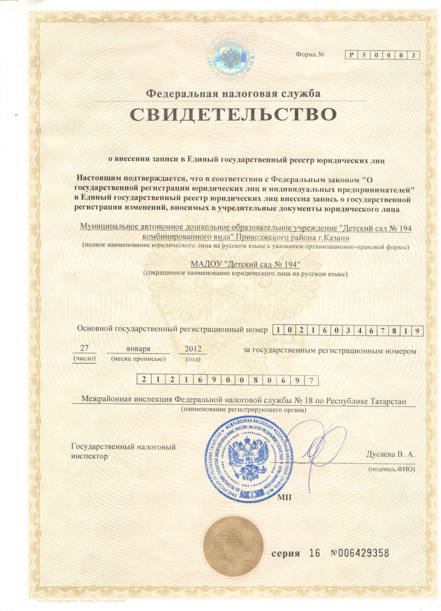 | Короткое название: | МАДОУ "Детский сад № 194" |