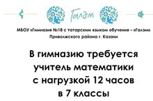 В гимназию срочно требуется учитель математики с нагрузкой 12 часов (возможно совместительство)