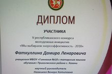 Учащийся 9 "Б" класса Фатхуллин Дамир Ленарович принимал участие в V республиканском конкурсе молодёжных инициатив