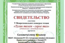 Татар галим - мәгърифәтчесе Ибраhим Хальфин исемендәге республика фәнни-эзләнү укучылар конференциясе ндә ,ТР Мәгариф һәм фән министрлыгының 3нче дәрәҗә диплом белән җиңүче булып танылган гимназиябызның укучысы Вәлияхмәтова Зәринәне котлыйбыз.