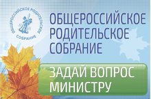 Стартовал сбор вопросов к Общероссийскому родительскому собранию с участием Министра образования и науки О.Ю. Васильевой.30 августа 2017 года Министр образования и науки Российской Федерации Ольга Юрьевна Васильева проведет Общероссийское родительское собрание с участием родителей, учителей, а также представителей общественности, которых волнуют перспективы развития системы школьного образования. Задать свой вопрос Министру можно уже сейчас. На сайте Минобрнауки России для этого открыт специальный раздел «Общероссийское родительское собрание» – http://минобрнауки.рф/родительское-собрание. Вопросы, заданные через сайт также найдут свое отражение в ответах Министра. -