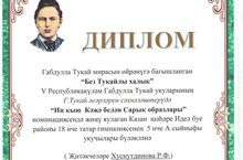 Габдулла Тукай мирасын өйрәнүгә багышланган "Без Тукайлы халык" V Республикакүләм Габдулла Тукай укуларының Г.Тукай әсәрләрен сәхнәләштерүдә "Иң кыю Кәҗә белән Сарык образлары" номинациясендә җиңү яулаган 5А сыйныфы укучылары бүләкләнде (җитәкчеләре Хуснутдинова Р.Ф.).