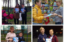 Сегодня ученики 7А класса, участвующие в городском конкурсе "Классный марафон" агитировали общественность и раздавали листовки с напоминанием о благотворительной акции "Позвони учителю".