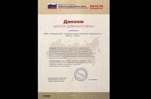 МБОУ "Гимназия №18" награждена ДИПЛОМОМ "Школа цифрового века" за участие в Общероссийском проекте "Школа цифрового века", разработанном в соответсвии с Федеральной целевой программой развития системы образования на 2011-02015 годы и направленном на комплексное обеспечение образовательных учреждений цифровыми предметно - методическими материалами и дистанционными образовательными ресурсами для повышения профессионального уровня педагогических работников