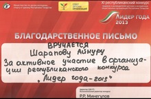 Ученик 9 класса Шарапов Айнур награжден БЛАГОДАРСТВЕННЫМ ПИСЬМОМ Совета детских отрганизаций Министерства по делам молодежи, спорту и туризму Республики Татарстан за активное участие в XI республиканской конкурсе Лидеров и руководителей детских и молодежных общественных организаций Республики Татарстан. МОЛОДЕЦ!!!